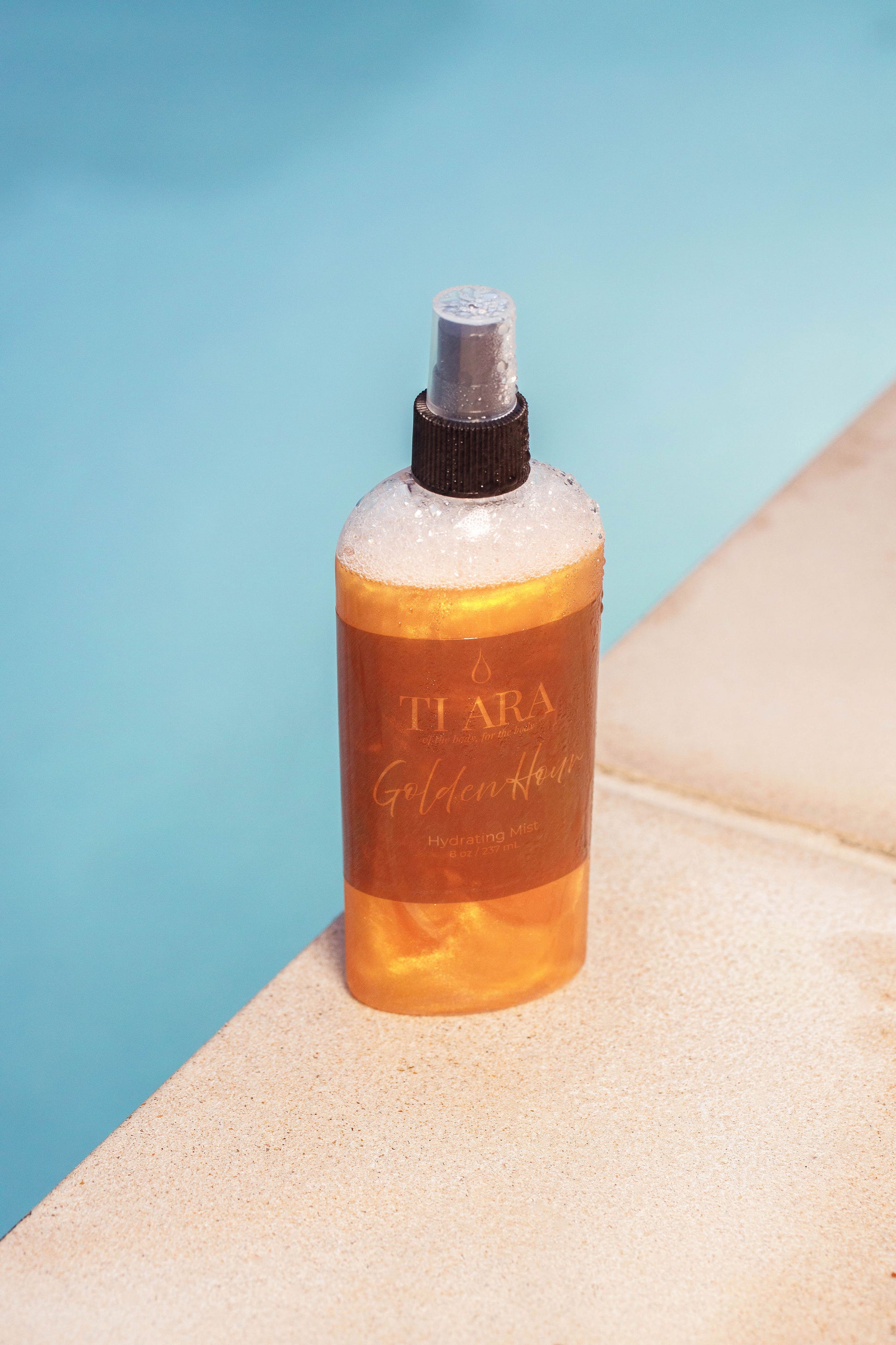 Mist onto drenched skin at the end of your shower, after a dip in the pool, or whenever your body craves a quick hit of hydration and glow. Golden Hour captures the light with every move, leaving you glowing and unforgettable.
