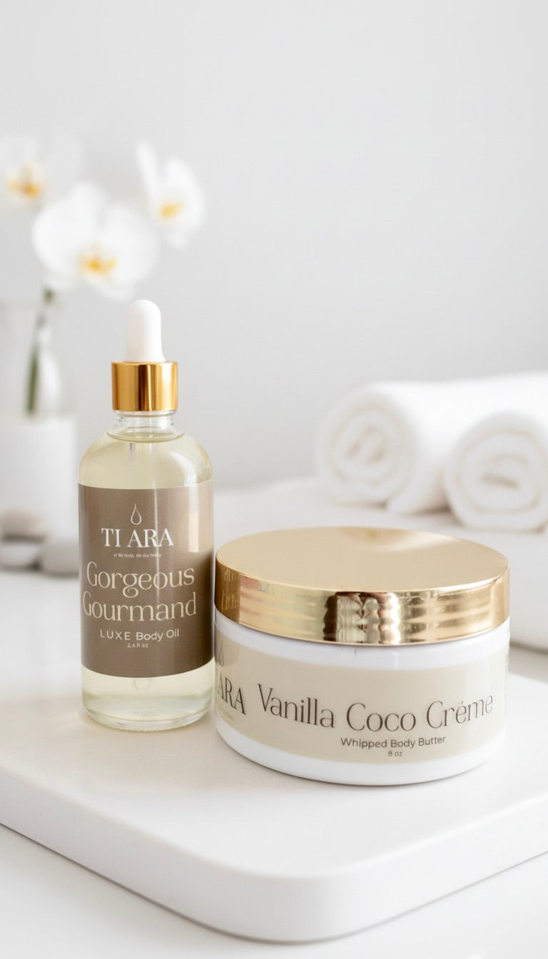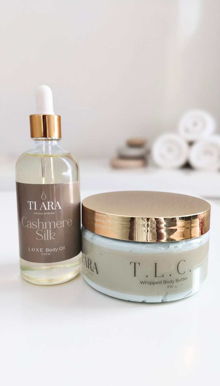 Indulge your skin in the ultimate self-care duo. The Body Bundle pairs any of our rich, whipped 8oz Body Butters with a full-size Luxe Body Oil for a layered ritual that looks, feels, and smells like luxury. Choose your favorite scent and let the butter deeply nourish while the oil seals in softness and glow.